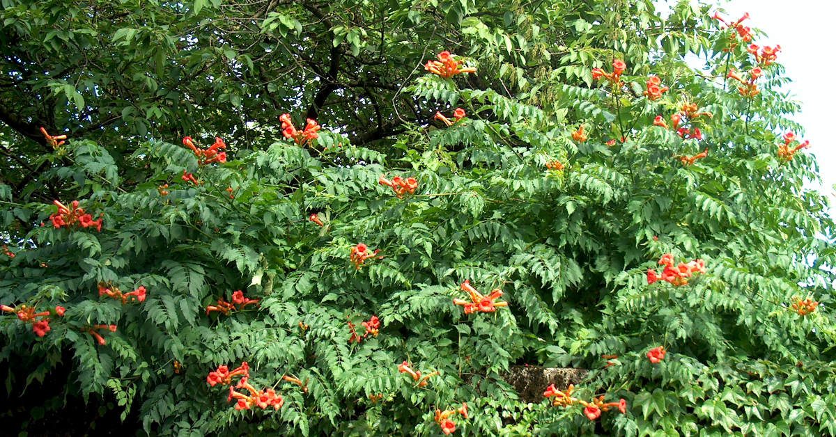 Charakterystyczne, trąbkowate kwiaty zebrane są w baldachowate kwiatostany liczące od 4 do 10 kwiatów i rozwijają się na końcach tegorocznych pędów. Kwitnienie trwa od lipca do września, a w sprzyjających warunkach nawet do października. Barwy kwiatów obejmują odcienie ceglastoczerwone, karminowe, pomarańczowe i żółte, w zależności od odmiany. Roślina przyciąga pszczoły, motyle, a w naturze również kolibry.